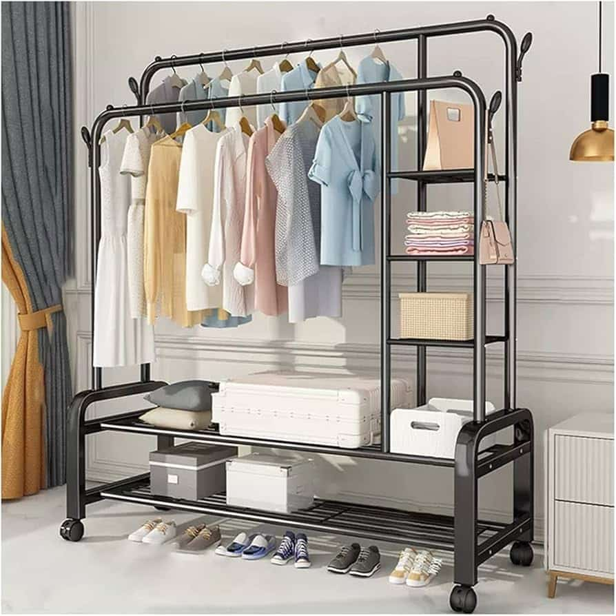 Adauga functionalitate si stil modern in holul sau dormitorul tau cu acest organizator complet din metal, cu rafturi multiple si cuier integrat. Ideal pentru depozitarea hainelor, incaltamintei si accesoriilor, acest suport este alegerea perfecta pentru spatii mici sau medii.